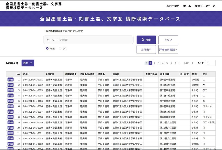 全国墨書土器・刻書土器、文字瓦 横断検索データベース