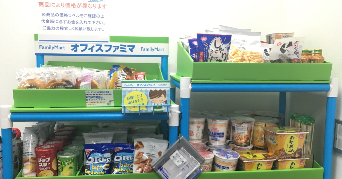 仕事がひと段落ついて、少し休憩しようかなって思った時に「お腹が空いた・・・」ってことがよくありますが、そんな時はこれです!オフィスコンビニです★画像の様にミニサイズのコンビニが社内に導入されてい...