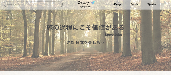 オリジナル旅行記事閲覧サイトを作成しました。 ユーザーは観光地記事閲覧の他に、その観光地の写真を投稿して共有することができます。 簡単な紹介文はGitHubのREADMEに記載してあります。 https://github.com/anomeme/traverip 開発環境 言語:Ruby 2.5.1 フレームワーク:Ruby on Rails 5.2.4 サーバー:AWS (EC2サーバー、画像はS3使用)
