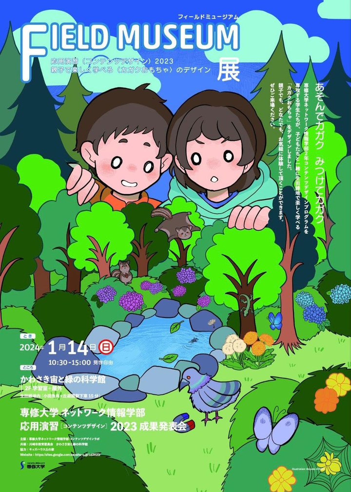 応用演習コンテンツデザインプログラムでは、子供向けのカガクおもちゃを制作し、実際に科学館で「FIELD MUSEUM」という、子供に体験してもらうワークショップをおこないました。 活動記録をまとめています↓ https://s.craft.me/sAx6z5Mil03PmG
