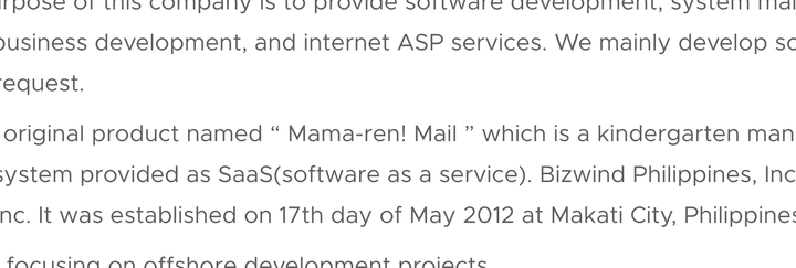 ・Microsoft 製品の提案、製品活用のコンサルティング ・自社運営サービスのカスタマイズや不具合の調査対応 ・フィリピンのエンジニアチームへの作業指示、成果物受入