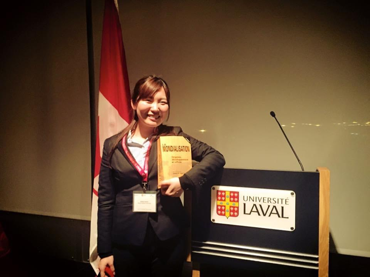 アルバータ大学高円宮記念基金、日加戦略的留学生交流促進プログラム日本コンソーシアムのサポートの元、日本とカナダの提携大学からそれぞれ一人ずつ選抜され、カナダのケベックにあるラバル大学にて約一週間半行われる日本カナダ学術フォーラムに参加しました。各業界のからのゲスト講師からの講義やフィールドトリップを通じて、”Youth, Work, and a New World in the Making.” というテーマに対するそれぞれの考えを議論しました。4チームの中からベストプレゼンテーション賞をチームとして受賞し、個人としても計10人の日本人学生中から選ばれ、リーダーシップ賞を受賞しました。