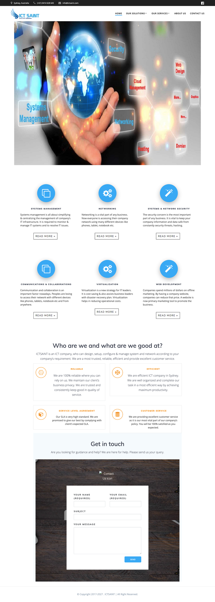 It is an Australian based IT company Technology Stack: Frontend: HTML5,CSS3, Bootstrap Backend: PHP Database: MySQL
