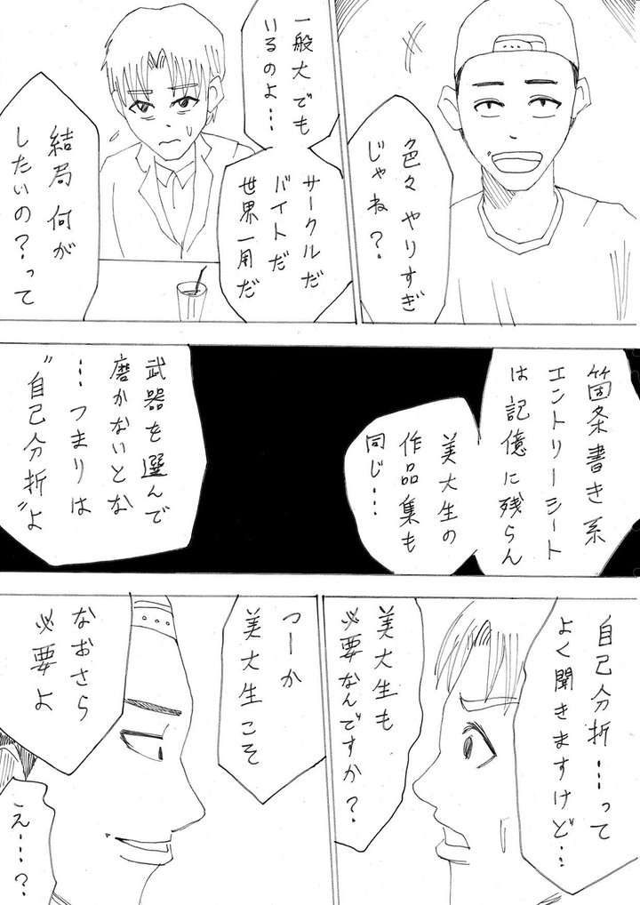未来の上司になる神谷さんに、大学3年時にOB訪問。 美大生だからこそ自己分析が必要なことや、アートディレクターとはなんたるかを教えてもらい、神谷さんの影響でタバコを吸い始める。