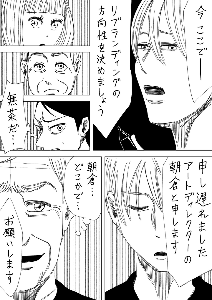 営業担当は流川さんと、岸あかりの弟・アラタ。 オリエンのつもりで園宮製薬に伺うが、社長が同席し、急遽その場での提案を求められる。 園宮製薬の娘である千晶さんとの会話から、新しいブランド名「ウィークデイ」を導き出すことができた。