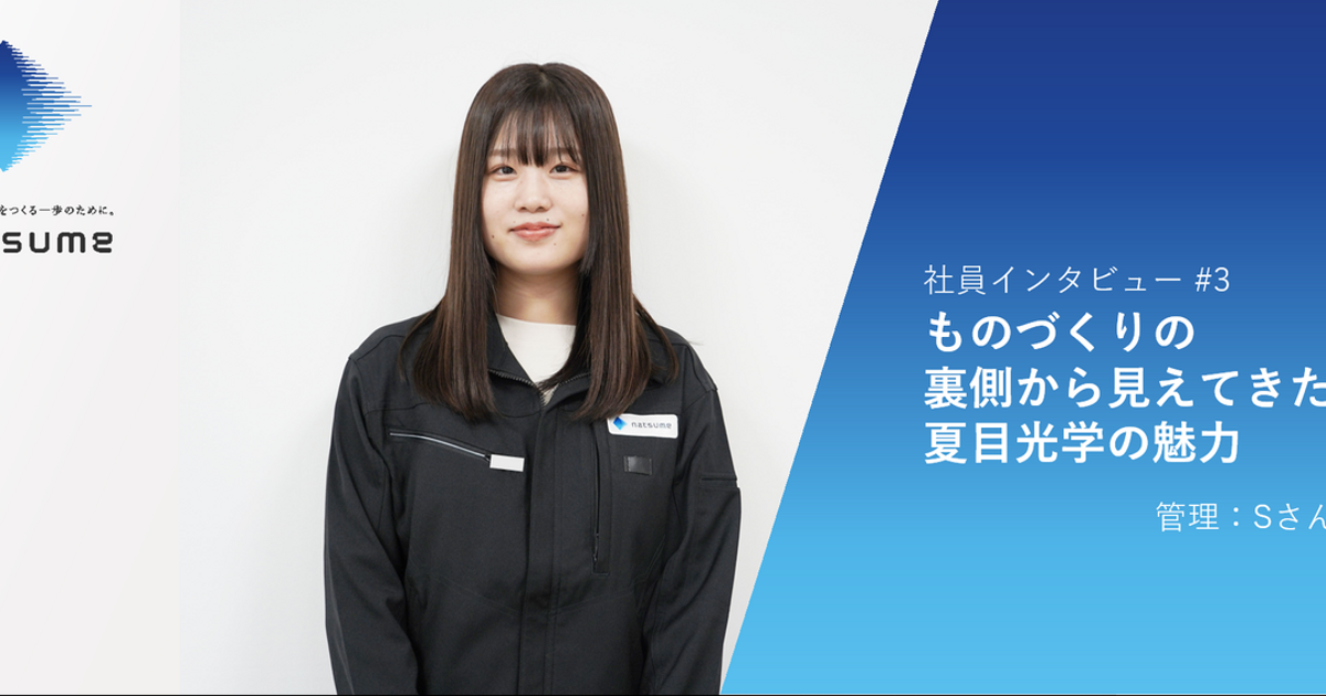 自分の軸であった、頑張る人をサポートする仕事、人と協力し何かを作り上げる仕事がしたい。夏目光学の熱意を持って仕事に取組む姿に惹かれ、自分ができることはなにかを考えながら、みなさんが仕事に集中できる環境づくりに 日々励んでいます。