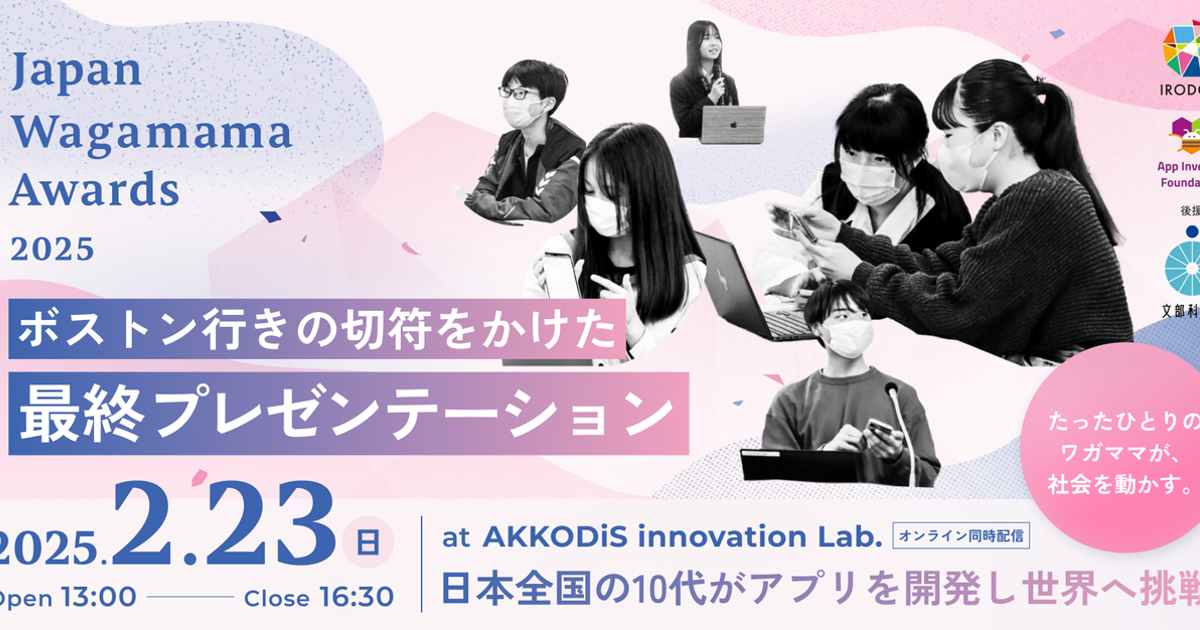 10代の若者がアプリを開発し世界に挑戦。Japan Wagamama Awards2025ボストン行きの切符をかけた最終プレゼンテーションの会場参加・オンライン視聴予約をスタート
