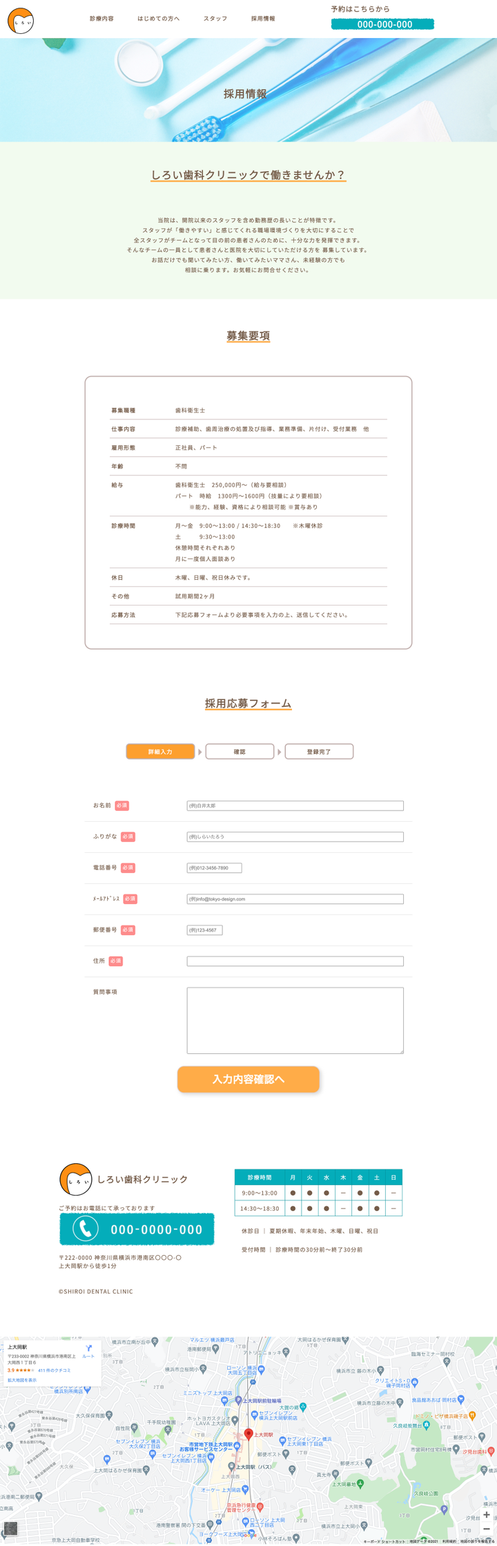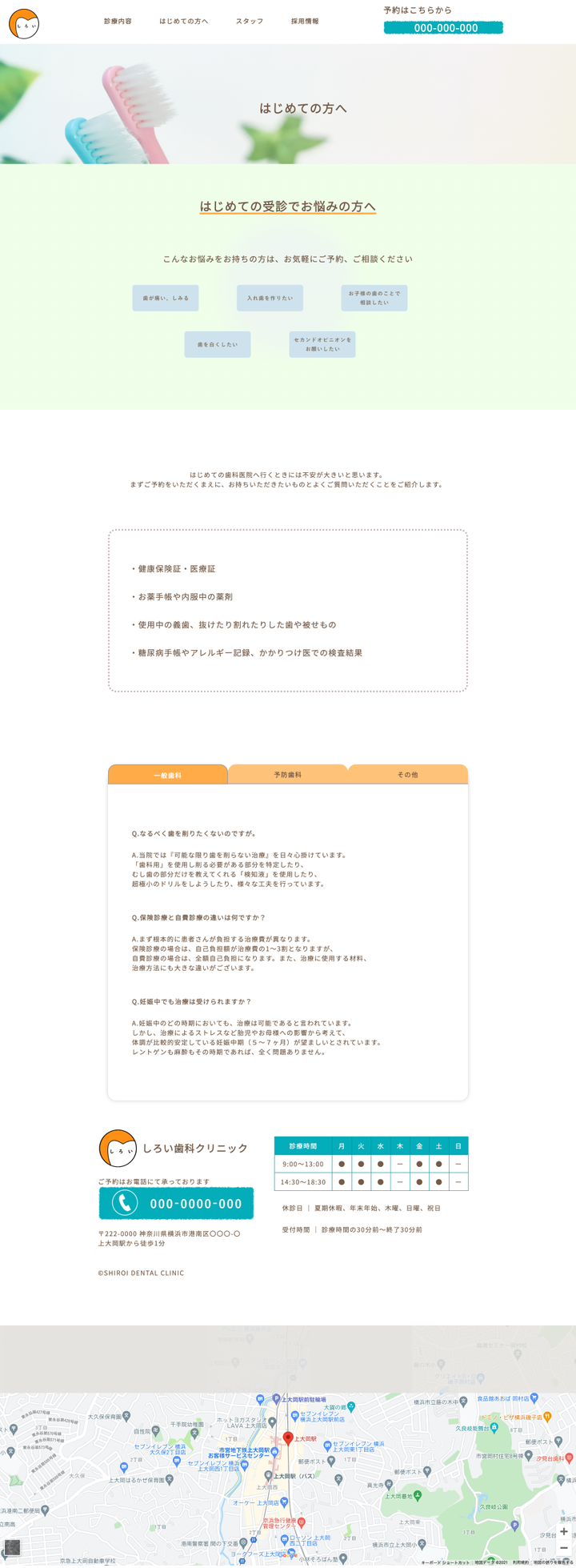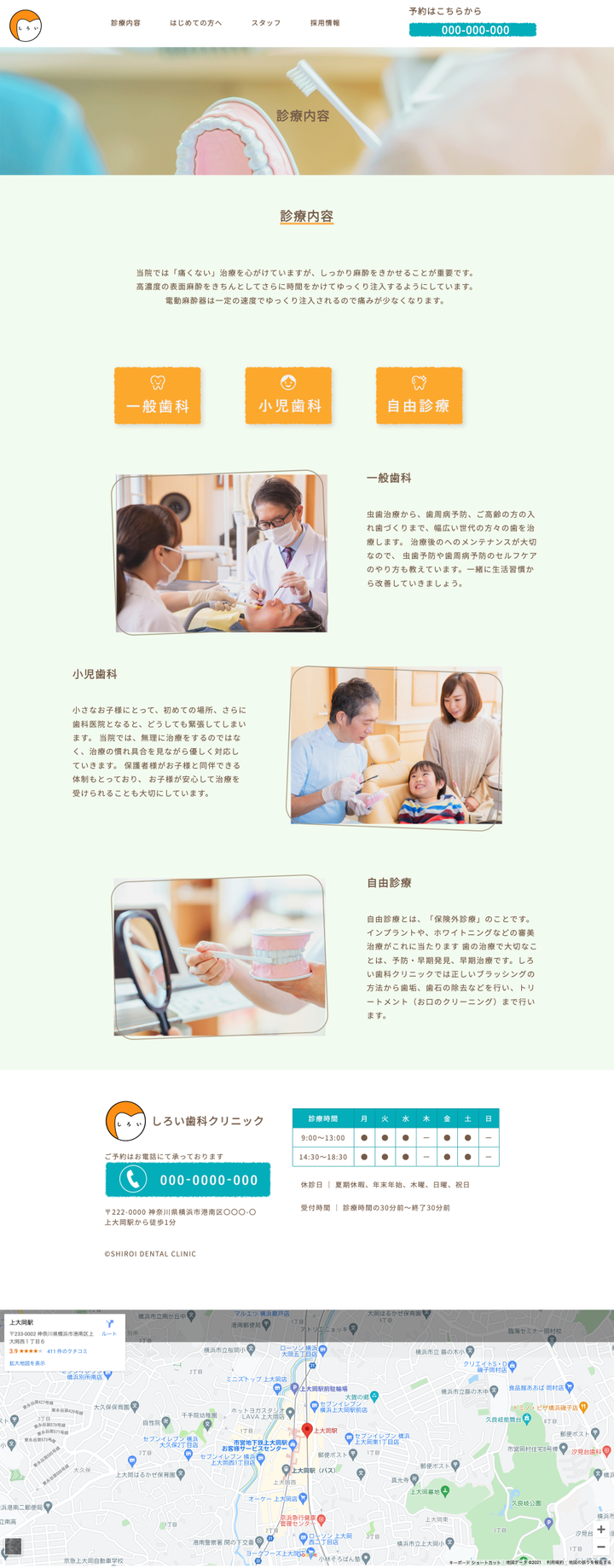 【架空の歯医者のWEBサイト】(製作期間1ヶ月) コンテンツの企画、Photoshopでのデザイン作成/画像加工、ライティング, コーディング 【WEBサイトの目的】 ・15年の迎えるタイミングでWebサイトをリニューアル。 積み上げてきた信頼感を全面に出す親しみあるイメージを持ってもらう。 ・初めての方が予約する。 ・以前は予約ボタンがグローバルナビの項目に含まれ、分かりづらいとの声があったので予約ボタンをわかりやすくする。 【ターゲット】 ・0歳から10歳の子供を持つ20代~30代の女性 ・子供の歯が生えてきたので、早い時期から 虫歯にならないようかかりつけの歯医者を探している。人見知りな子供でも大丈夫そうな歯医者を探している。