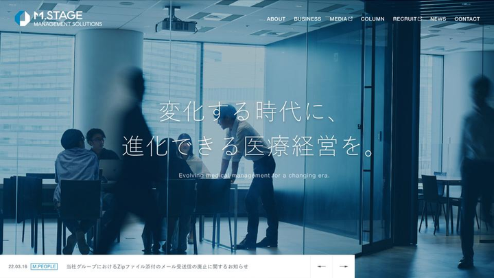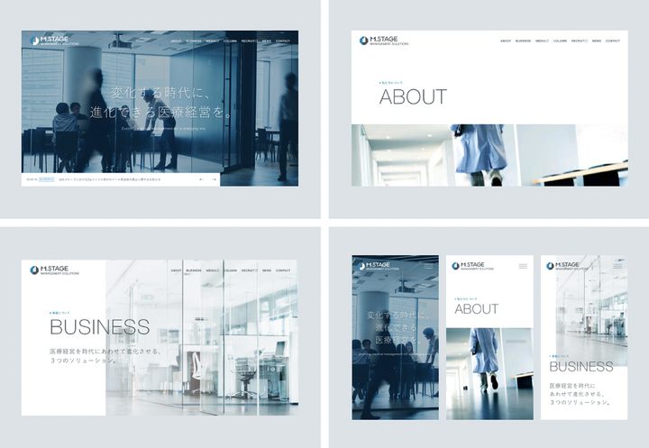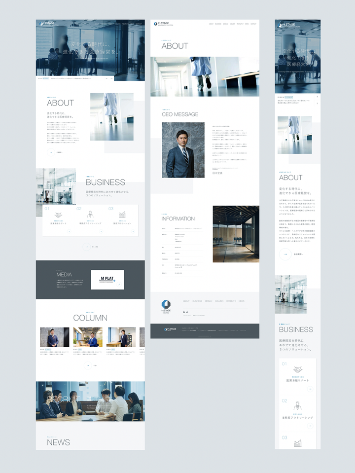 「すべては、持続可能な医療の未来をつくるために」をミッションにしているエムステージグループの事業拡大に伴い、医療経営支援事業をおこなう株式会社マネジメントソリューションズのコーポレートサイトのリニューアルを担当しました。 エムステージグループのブランドレギュレーションを引き継ぎながら「プロフェッショナル・ビジネス・医療」の3つのキーワードをベースに、全体の写真選定・配色計画・モーション・アイコンやボタンなどのデザインを計画。 グループサイトと地続きな世界観でありながらも、事業単体のイメージの差別化を図り、MMSの個性を際立たせたデザインを目指しました。