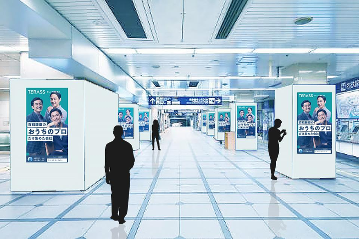 「いい不動産取引は、いいエージェントから。を当たり前にするプラットフォームをつくる。」をミッションに 不動産仲介事業を展開している株式会社TERASSのサイネージ広告のアートディレクション・デザインを担当。 通行する人々のアイレベルを考慮したり、駅構内全体をキャンバスと捉えた色彩計画を行うなど、 実際の媒体を想定した検証を行なって完成しました。