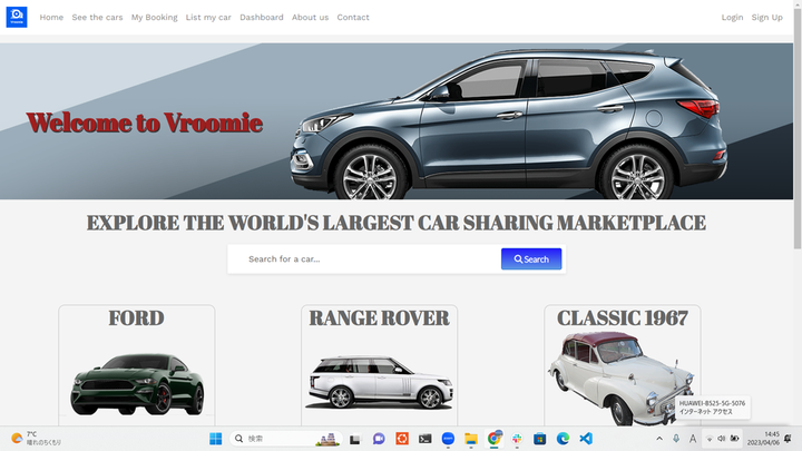 1週間でAirbnbをモデルにした車のレンタルWebアプリ"Vroomie"を4人チームで設計、実装、Herokuにて公開。Ruby on Railsを使って開発。