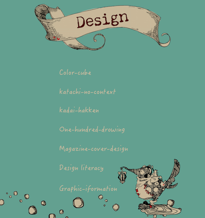 大学一年生の授業で製作したportfolioサイトです。 自分を紹介することを目的としていたので自分の好きなテイストのイラストを描き、 統一した雰囲気のwebページを製作しました。 作品紹介ページではスライドショー形式で作品の写真が流れます。 授業の最後に学科内で人気サイトのアンケートをとった結果、 学科内3位になることができました。イラストによる雰囲気の統一とテイストの好みに共感してくれた方が多かったようです。 初めてのwebページ制作ということもあり、今見ればコーディングの点で修正したい箇所はたくさんありますが、自分の目標としたデザインのサイトを作り上げたという点では今後も「妥協しない」「理想をしっかりともつ」という自分の美点をしっかりと発揮できた作品お一つだと考えています。