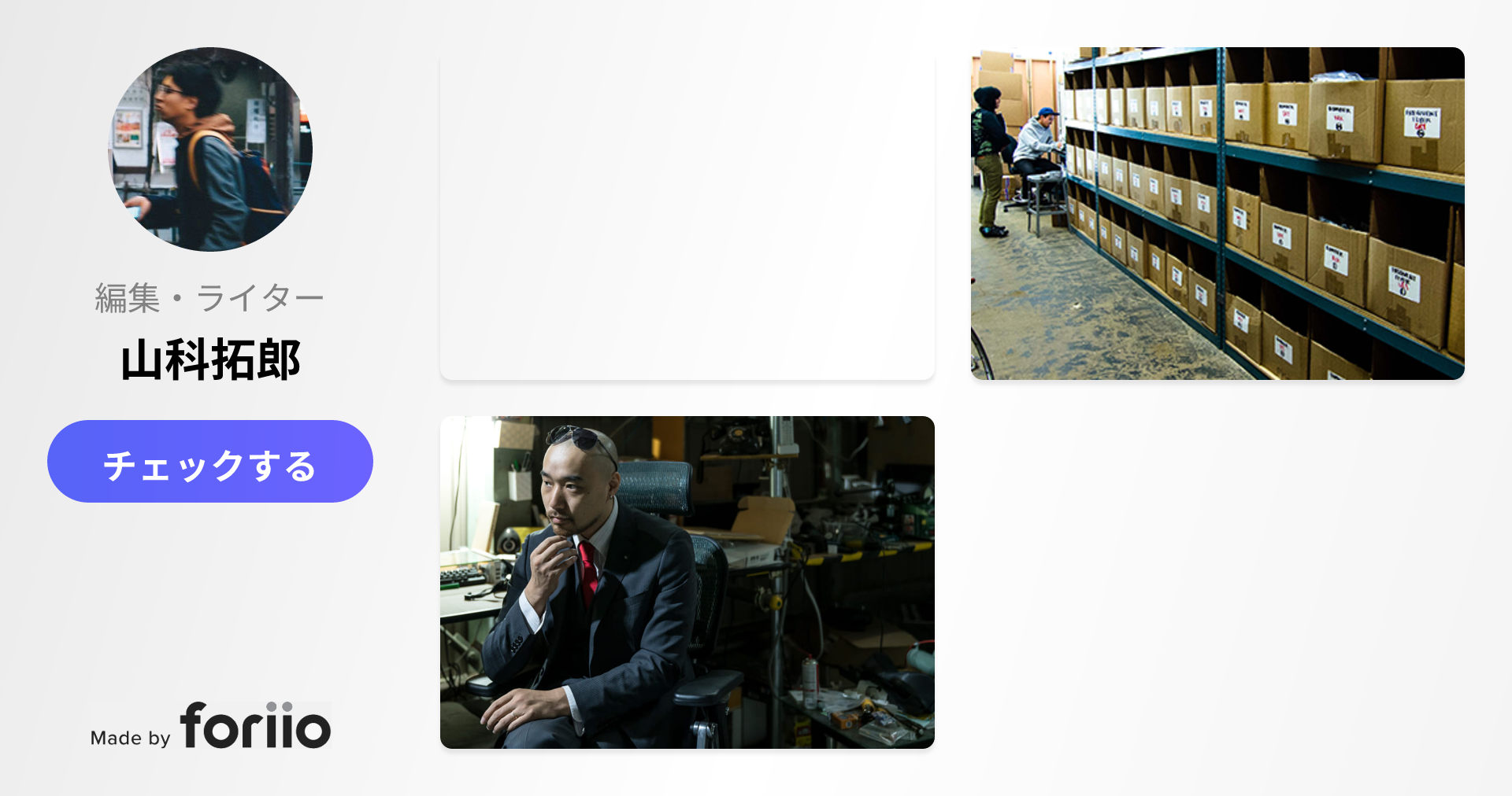 フリーランス6年目となった現在では、チームを組んで制作に携わるフォトグラファーやビデオグラファー、デザイナーなどの人脈も広がってまいりました。以前より規模の大きな案件に積極的に取り組めることを目標としつつ、0→1を作れる仕事を模索中。畑仕事とか、事務所づくりに興味津々です。