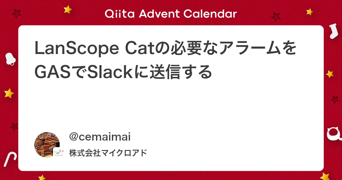 Google Apps Script (GAS) を利用して LanScope Cat のアラーム通知を検索し、Slack に送信する方法を書きました。