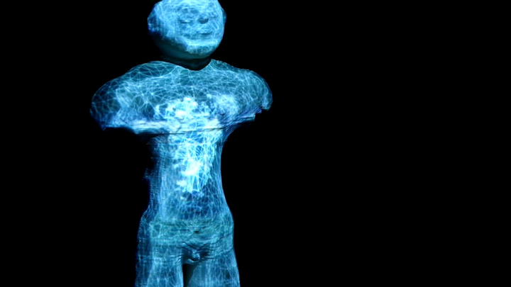 国宝「中空土偶」について、プロジェクションマッピングを用いて解説する展示システム