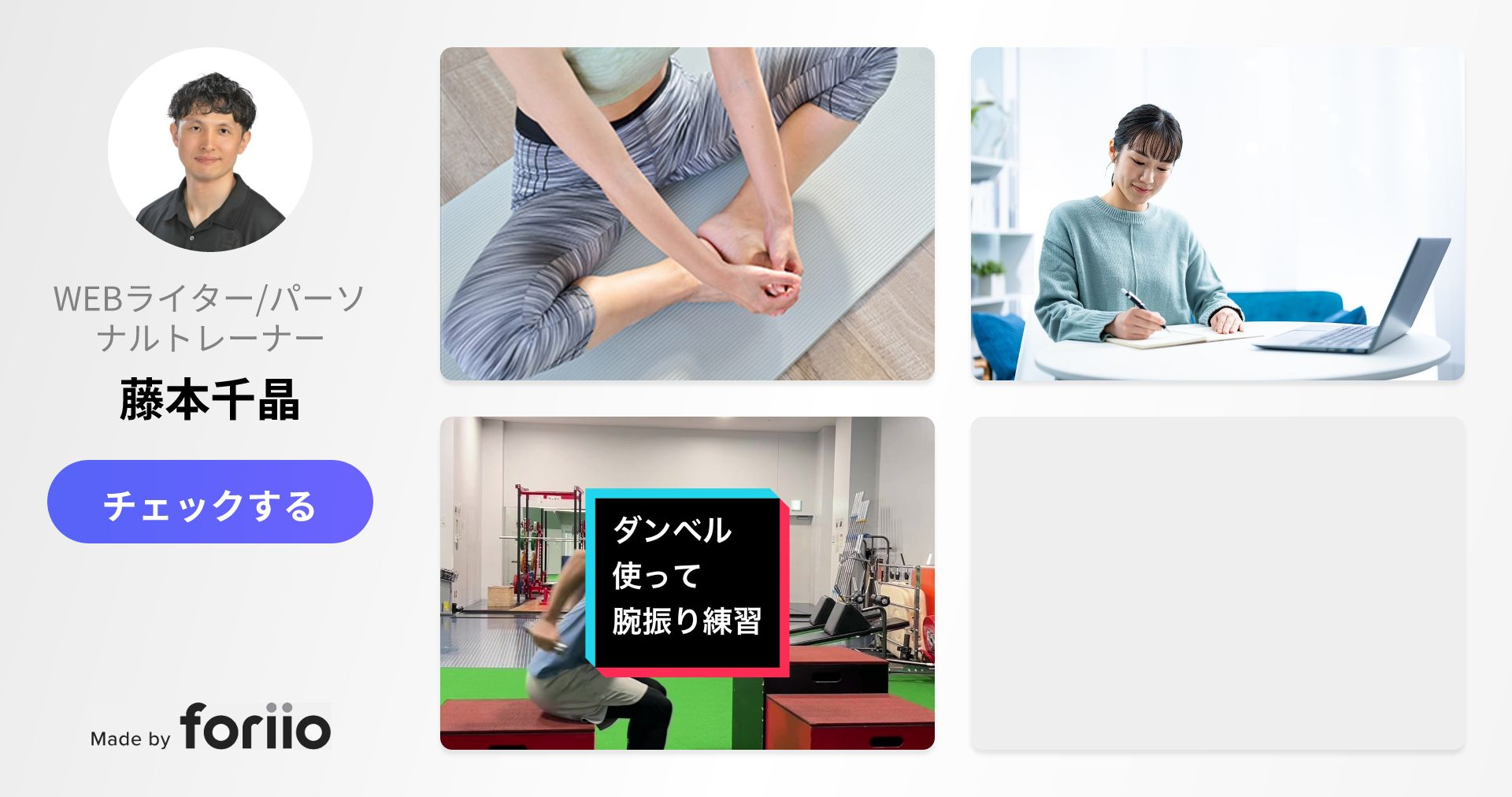 ダイエット・体型改善などフィットネス関連のWEBライティングをしています。 科学的根拠に基づき、正確性・信頼性のあるフィットネス情報を多くの人に届けるためにYMYLに対応した記事として出すことが私の役割だと思っています。