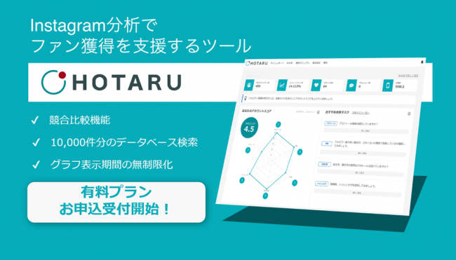 インスタ分析ツール「HOTARU(ホタル)」競合アカウント比較機能を搭載した有料プラン(月額:1万円~)お申込受付開始