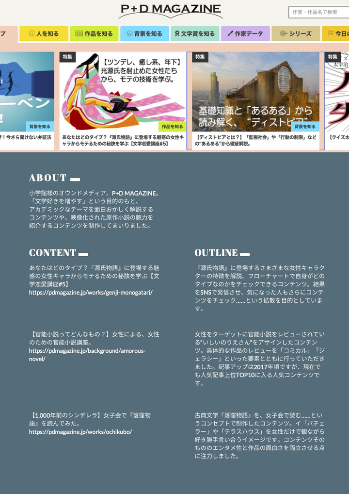 小学館様のオウンドメディア「P+D MAGAZINE」における主な執筆歴です。