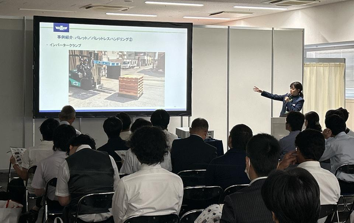 「多様な荷役作業をフォークリフトで実現! アタッチメントによる効率化の事例紹介」、「CASCADEが目指すAGVソリューション~フォークリフト作業の自動化へ向けて~」の2テーマでセミナーを行い、たくさんの方々にご来場頂きました。