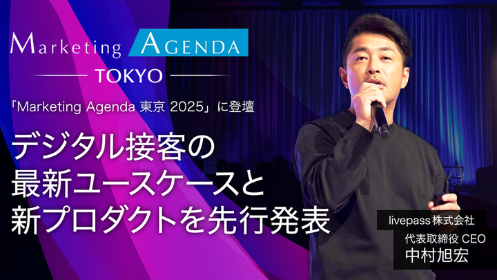 2025年11月26日・27日に開催された招待制マーケティングカンファレンス「Marketing Agenda 東京 2025」に登壇し、次世代プロダクト戦略「livepass NEXT」および最新のデジタル接客ユースケースを紹介しました。