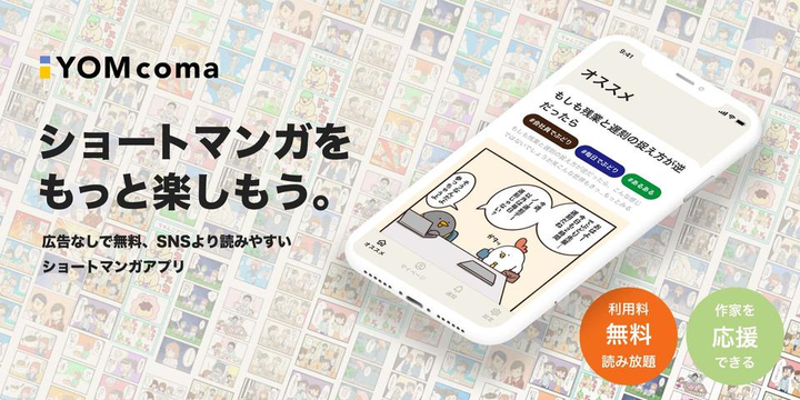 スキマ時間にぴったりの無料ショートマンガアプリ「YOMcoma(よむこま)」の体験全般をデザインしています。SNSなどに投稿されることの多いショートマンガ作品を作家さんがモチベーション高く投稿しやすいウェブサイト、読者が読みやすく新しい作品と出会いやすいアプリの双方を作っています。週3回のユーザーインタビューを欠かさず続け、ユーザー自身も気づいていないニーズやペインを掘り起こしながら、チームで開発を進めています。