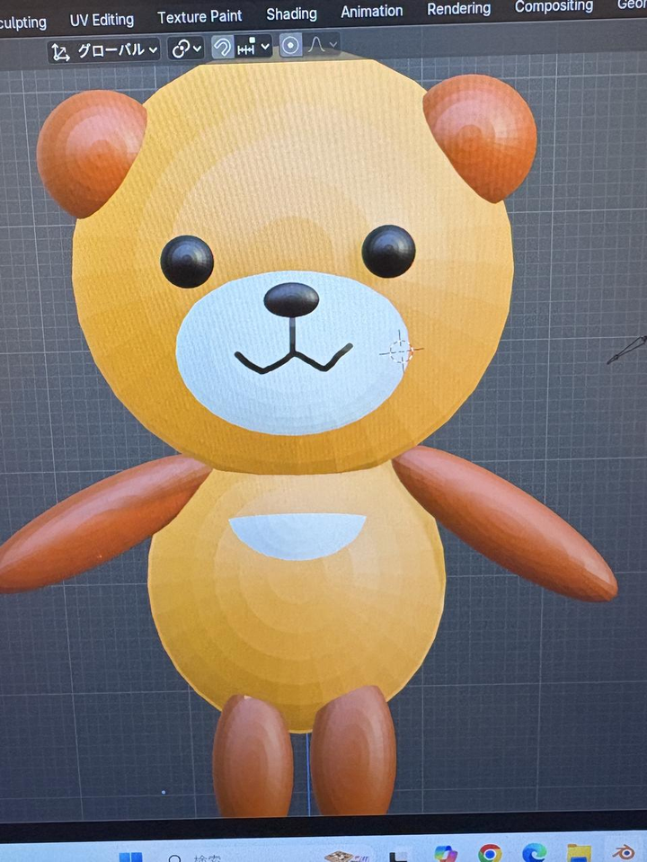 小さい時から一緒にいる思い入れのあるくまのぬいぐるみを3Dモデルで作成しました。 blenderを使うのは初めてです。 およそ1週間程度で作成しました。