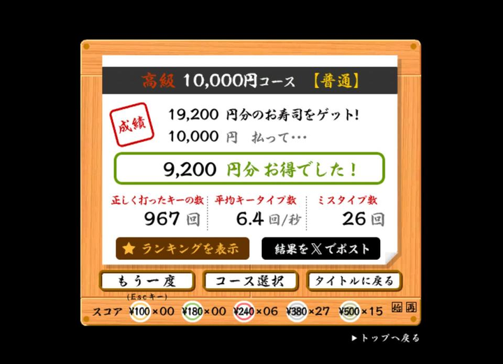 寿司打19200円点超え