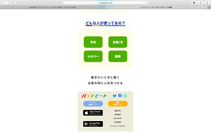 株式会社グランビートのアルバイトマッチングアプリのbaitobeatのLPを制作しました。