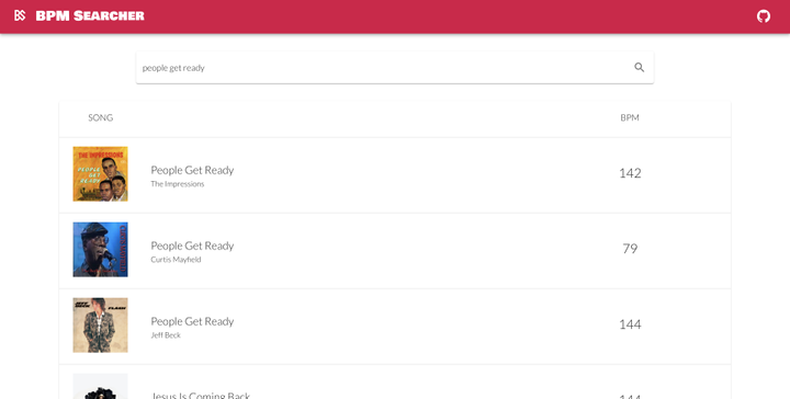 バンドをしていてメトロノームのみで曲の練習したいことがよくありました。 そこでSpotify APIを使って曲名等を検索してBPMを取得することができるアプリを作りました。 フレームワークはflaskを使っています。 clean architectureを採用しました。 spotifyへのaccess tokenやランキングは毎回spotify apiにリクエストする必要がないためredisにキャッシュをしています。