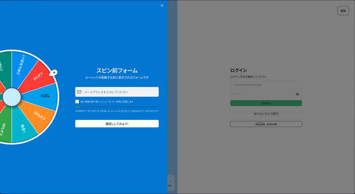 - カラーミー事業者向けゲーミフィケーションクーポンプラットフォーム開発 - スピンホイール形式で顧客データ(メール、名前、電話番号)を楽しく収集 - 技術スタック:SvelteKit、PocketBase、Vercel、AWS Lightsail - 特徴:カスタマイズ可能なテーマ、データエクスポート機能、分析ダッシュボード