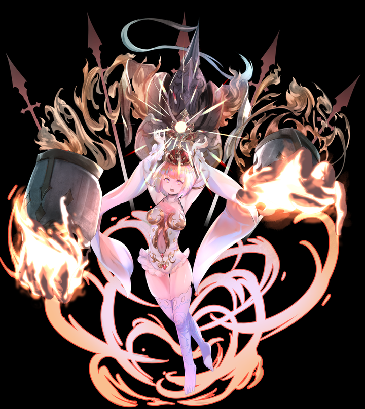 依頼内容: 聖女キャラをメインテーマにしたイラストです。 聖女キャラクターという指定のみで依頼がありました。 キャラクターの聖女らしさと、巨大騎士の英霊の武器との対比を利 用して、より面白いキャラクターデザインを目指しまし