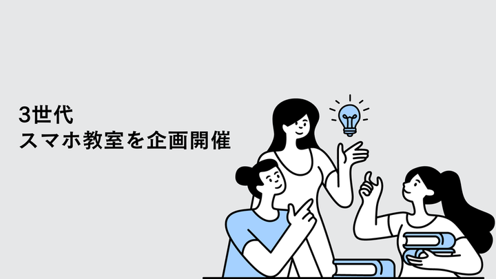 国の政策で携帯料金の値下げが行われた際は、店舗に来るのは興味のある現役世代のみでしたので、その親世代、子供世代も一緒に来店していただければ、親世代はガラケーからスマホへの移行、お子様には新しいスマホ・タブレット購入につながるのではないかと考え、3世代の方が一緒に店頭に来てもらえる親子3世代スマホ教室を企画。代理店専務様、店長様、上長、担当営業へ掛け合い協力いただき実施。 祖父母世代にはスマホの利便性を伝えるダイジェストスマホ教室、現役世代には料金が安くなる料金プラン教室、お子様世代にはプログラミング教室を同日同時間帯に開催。普段、携帯ショップに足を運ばない祖父母世代、お子様世代から新規のご契約をその1日で4組15台獲得、現役世代は料金も安くなり、祖父母世代は操作不安も教室でサポートしてもらえるなどでき、お客様、代理店様、スマホアドバイザーもwin-win-winに。その後、他店舗への横展開が進みました。その他にも新しい客層発掘のためスーパーやドラッグストアでのスマホ体験教室なども企画開催。