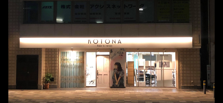 埼玉越谷駅すぐの美容室 kotona Hair & relax 越谷【コトナ ヘアアンドリラックス】のリニューアルの際に、外壁の一部をビジュアルデザインさせていただきました。