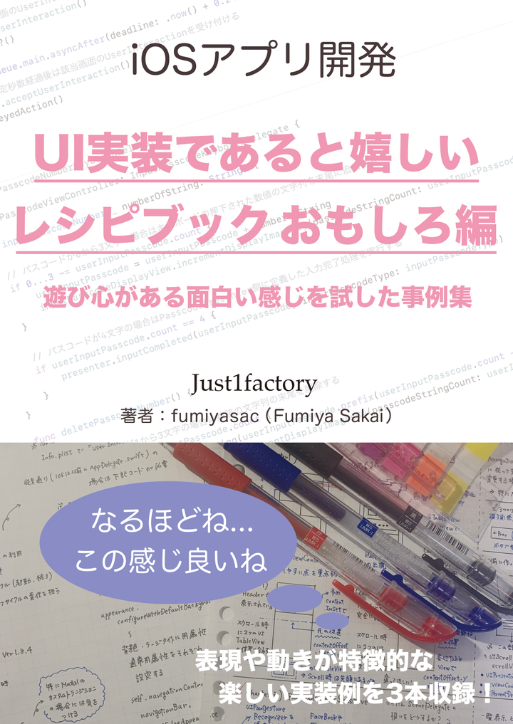 これまでの書籍ではUI実装のアイデアや具体的な手法についてフォーカスを当てた書籍を3冊執筆してきましたが、急遽Vol.3の前段として更に番外編として表現や動きが特徴的でかつ、ユーザーにもほんの少しだけ遊び心を与えるような楽しい感覚を抱かせてくれるようなUI実装に関する解説を「おもしろ編(番外編Vol.2)」として簡単でありますがまとめたものになります。Chapter1及びChapter2で紹介しているサンプル実装についてはUIKitをベースに構築したサンプルとなっていますが、Chapter3ではiOS13から登場したSwiftUIを利用して構築したサンプルとなっております。 これまでの実務の中で培ってきた知識や知見に加えて、一般的なiOSアプリに対しては利用可能なケースは限られてしまうかもしれませんが、アニメーションやインタラクションにひと工夫を加えることによって、見た目にも美しく触っていて思わず楽しくなりそうな感じのUI実装のエッセンスと、これからの普及が見込めるSwiftUIとOSSのライブラリをうまく利用するアイデアを紹介しておりますので、ほんの少しでもiOSアプリ開発におけるUI実装の道標となることができれば嬉しく思います。