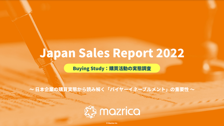 インターネット上で全国のビジネスパーソンのなかでも企業として100万円以上の購買経験/導入検討をしたことのある469名を対象に「日本企業の購買実態調査」を実施。 ▼『Japan Sales Report 2022 Buying Study』フルバージョンDL(全41ページ) https://product-senses.mazrica.com/dldocument/japan-sales-report-2022-summer