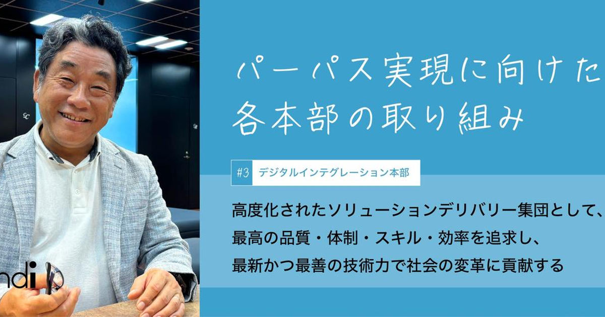 高度化されたソリューションデリバリー集団として、最高の品質・体制・スキル・効率を追求し、最新かつ最善の技術力で社会の変革に貢献する。#本部パーパス DI本部編