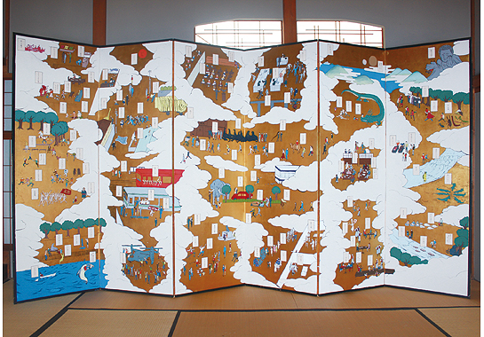2012年度金沢美大視覚デザイン専攻卒業制作作品。 日本古来から伝わる言葉遊びの一種であり現代の日常でも親しまれる駄洒落と、伝統的な日本の様式美である屏風を組み合わせ、ユーモア溢れるイラストレーション作品を目指しました。愛すべき日本ならではの2つの文化の双方により親しみを持っていただき、なにより観る人が少しでもクスリと笑えるような作品になっていれば幸いです。