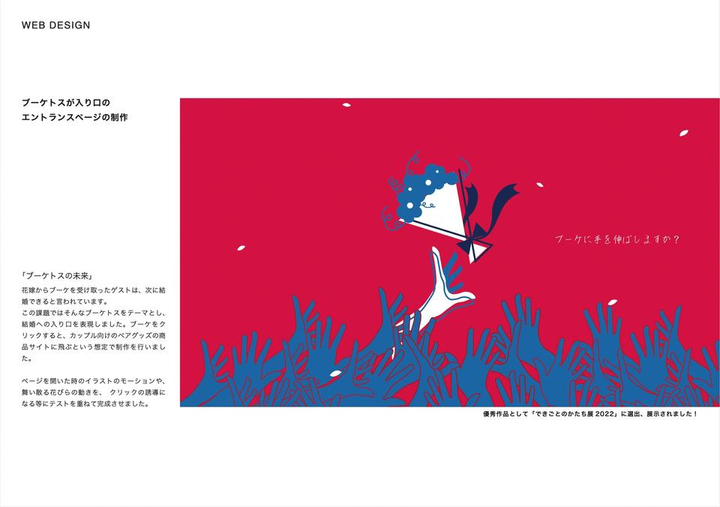 自身のスキルを伸ばし、表現方法を広げることで多くの方々にアプローチできる技術力を手に入れ、日常をより鮮やかにする幸せを届けることです。今までの制作の中でグラフィックデザイン、エディトリアルデザイン、映像表現、WEB制作、インフォグラフイックス、インタラクションデザインなど、幅広い表現方法に興味を持ち取り組んできましたが、その中でも目的に対して最適な表現を選択できるように、スキルを深めていきたいです。