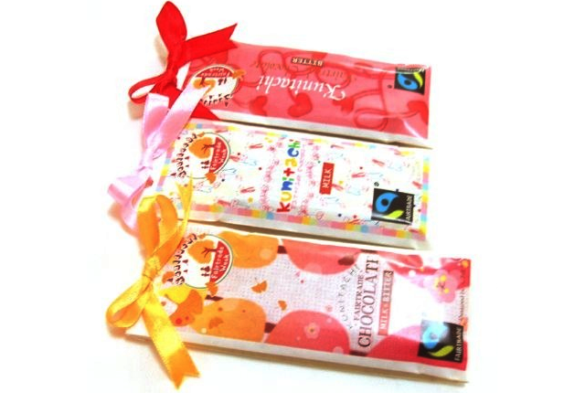 市民から募集したデザインを学生がアレンジした オリジナルパッケージのフェアトレードチョコレート。