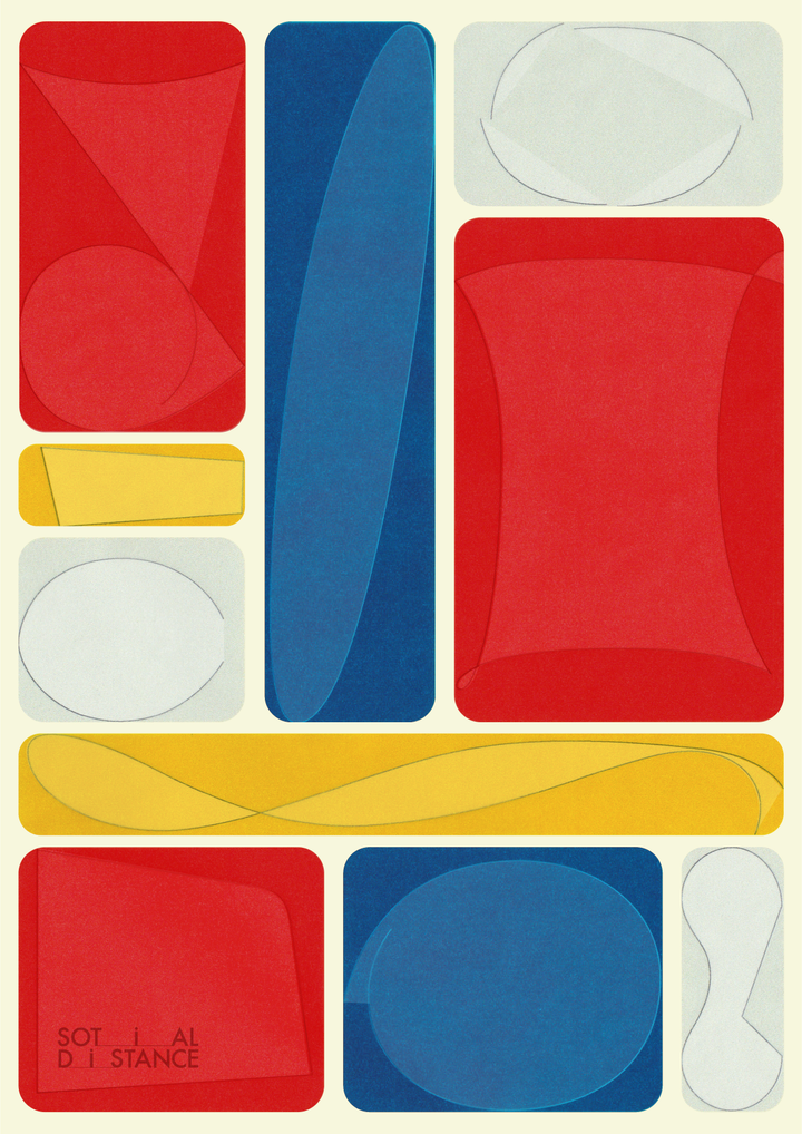ソーシャルディスタンスを推奨するためのイメージポスター。画面越しで人々が集まる様子をビジュアル化した。交流の暖かさを表現するため質感を意識し制作。ロゴは文字の中で人が離れて立っている様子をイメージ。