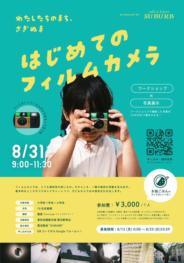1. はじめてのフィルムカメラ(bonvoyage株式会社、武蔵新城CHILLで開催) 2. ステキに映え農フォトツアー(川崎市高津区、高津区で開催) 3. ステキに映え農フォトツアー(川崎市高津区、高津区で開催) 4. はじめてのフィルムカメラ(bonvoyage株式会社、鷺沼SUBURBで開催) 1.4に関してはビジュアルデザインも担当しています。