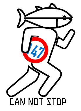 大学の授業の選抜課題で製作。製作テーマは「自分のアイデンティティとキャッチコピー」思い立ったら行動せずに入られない性格を、海の中で泳ぎ続けている「マグロ」で表現し、コンプレックスである身長147cmを道路の速度制限パネルに表して、それを持って走っているのは、「身長なんて気にせず、突っ走っていく姿」を表現。