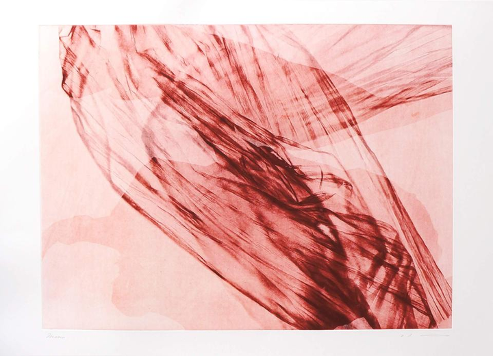 感光性樹脂版を用いた版画制作を深く研究したいという想いで、関連分野の専門家である先生のご指導のもと大学院に進学しました。紫外線と水の反応を利用した独自の表現方法を探求し、物質の影を写し取る、光による絵を描くというコンセプトで作品を制作していました。
