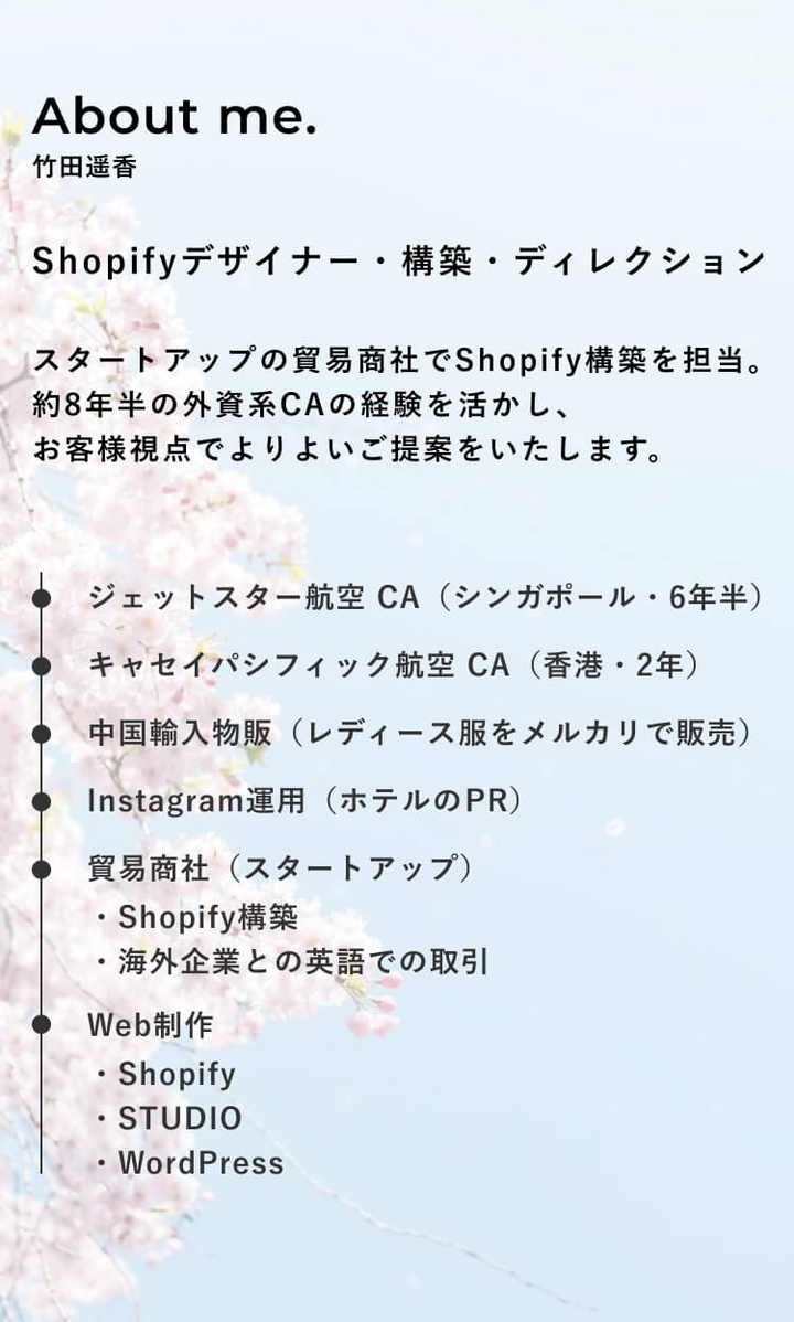初めまして。ショップコネクト代表の竹田遥香(たけだはるか)と申します。 【実績・ポートフォリオ】 https://haruka-design.studio.site/