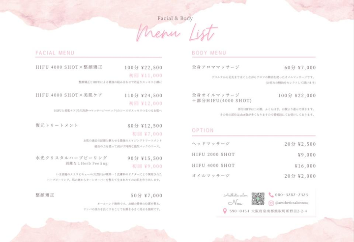 顧客様にお配りするメニューリストとのことで「シンプルで見やすく、とにかくピンク感があるものを!」とのリクエストで制作させていただきました。
