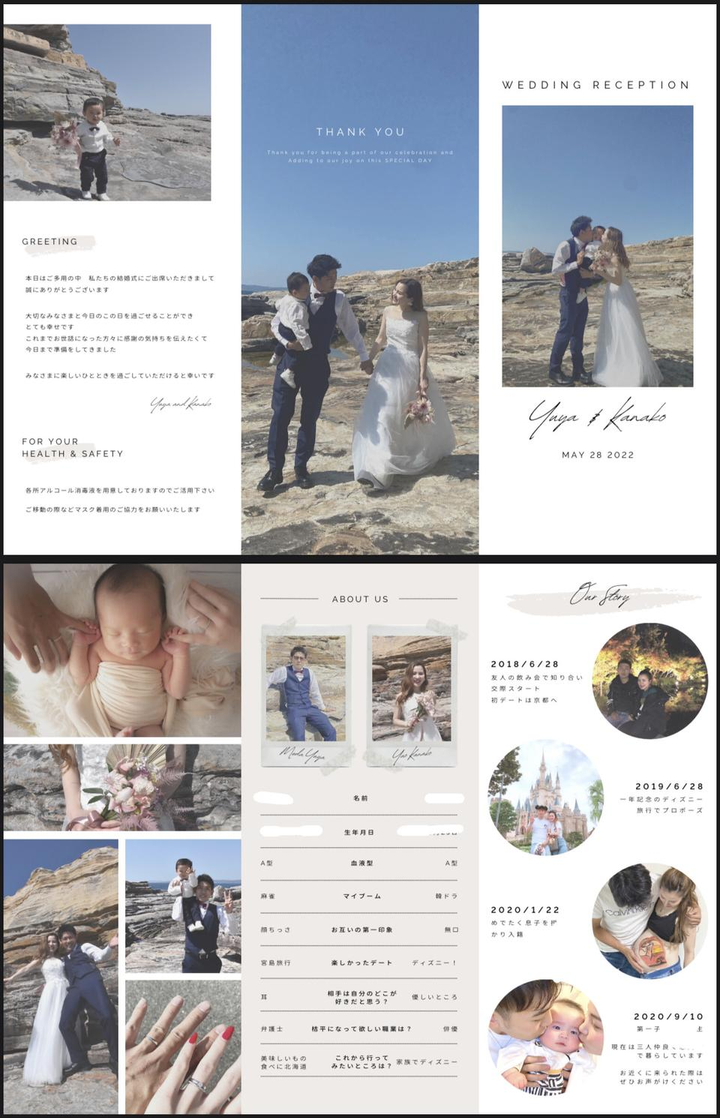 結婚式でよく使われる三つ折り両面のプロフィールブックです。