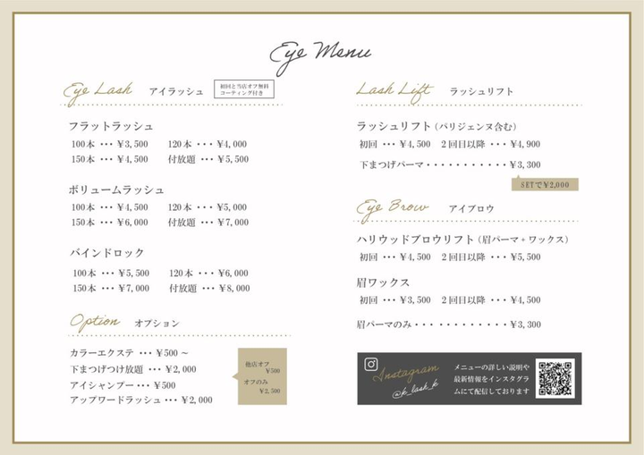 初めて制作したメニューリストです。10代から60代までと顧客幅が広いので読みやすさ重視でデザインしました。