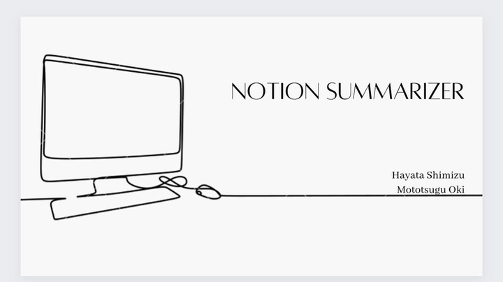 Notionに追加した記事を要約してデータベースに追加するというものです OpenAIのAPIを用いたハッカソンに参加しそこで作成したものになります