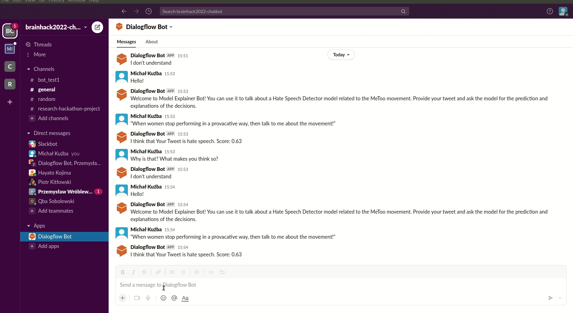 Brainhack Warsaw 2022にてチームでチャットボットを開発