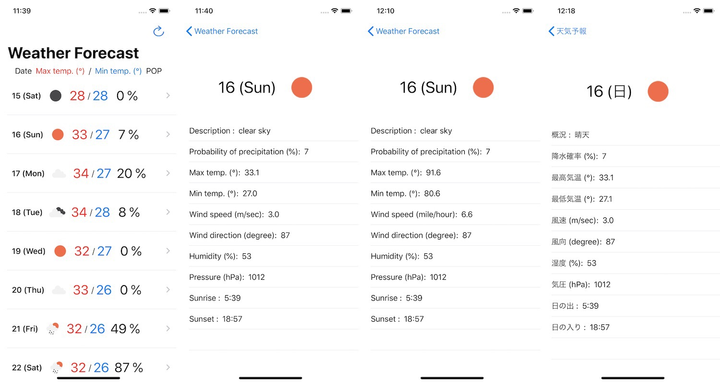 SwiftUI を学習するために作っているアプリです。Open Weather (https://openweathermap.org)より取得した天気を表示します。